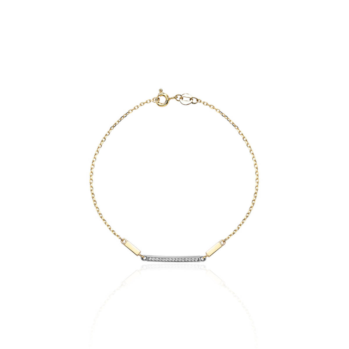 Браслет из двух цветов золота 585 пробы с фианитом. Идеальное сочетание желтого и белого цветов. Браслеты способны привлечь внимание к изяществу Ваших рук и добавить блеска любому образу. Из всего разнообразия вариантов дизайна можно выбрать именно тот, который впишется в Ваш уникальный стиль. Миксуйте, добавляйте подвески. Вы художник и стилист!