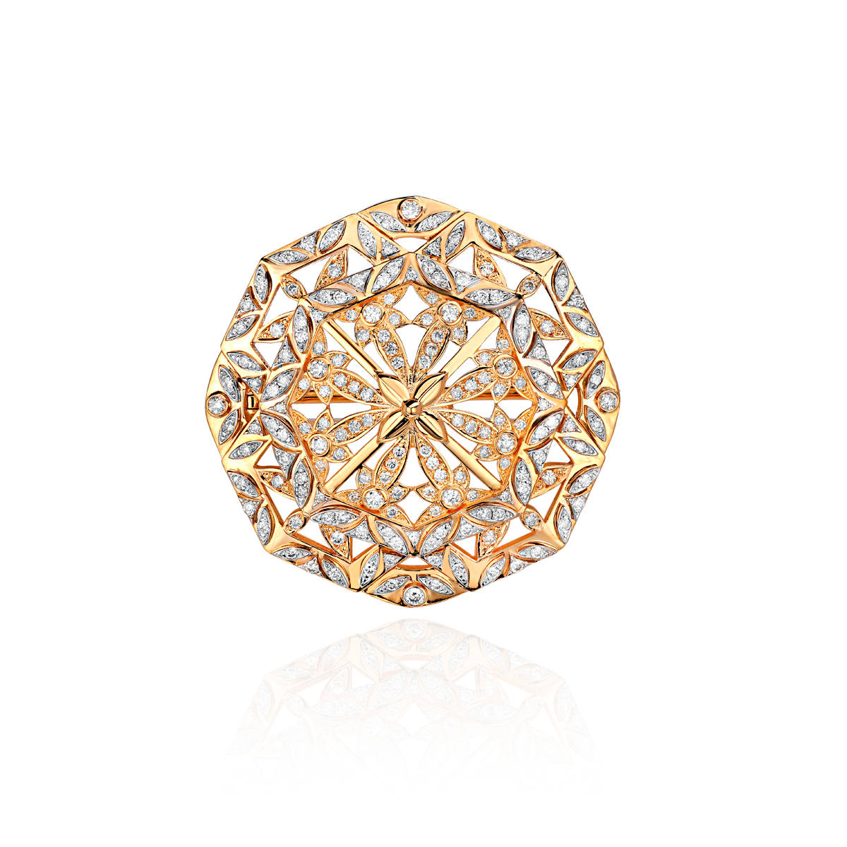 Брошь из желтого золота 750 пробы с бриллиантами 01Ш640347