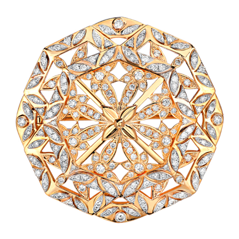 Брошь из желтого золота 750 пробы с бриллиантами 01Ш640237