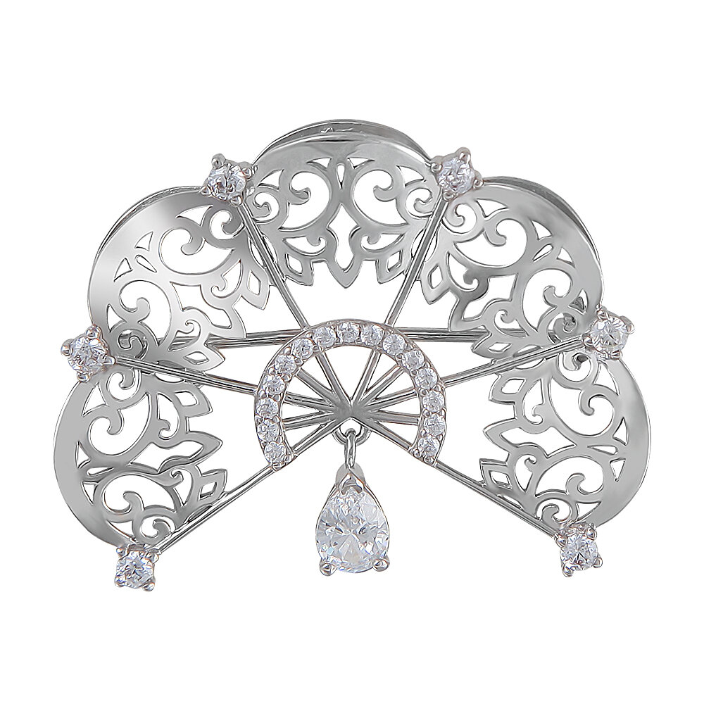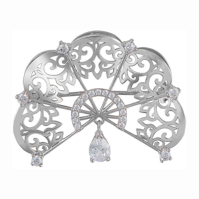 Брошь "Веер" из серебра 925 пробы с фианитами 01Ш150182