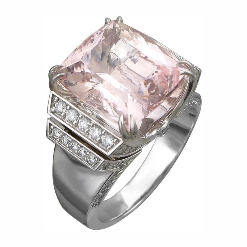 Кольцо из белого золота 750 пробы с морганитом и бриллиантами 01К6712920-3