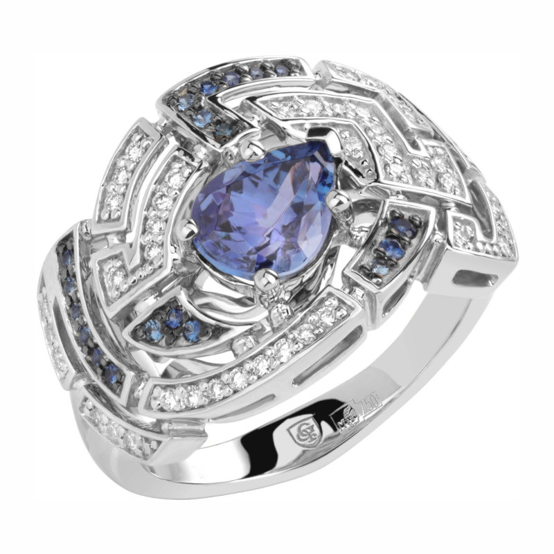 Кольцо из белого золота 750 пробы с танзанитом, сапфирами и бриллиантами 01К6713136-2