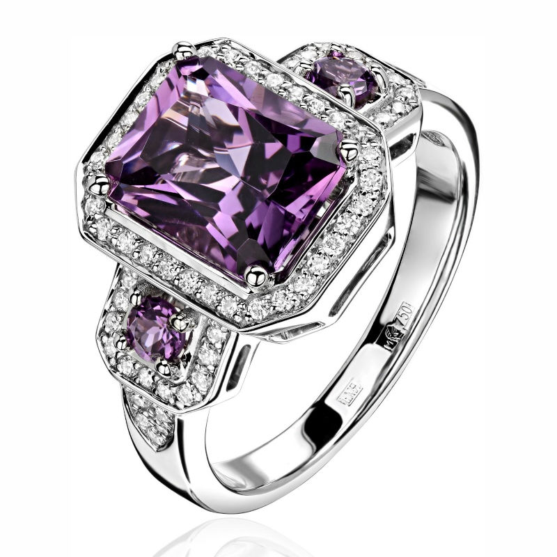 Кольцо из белого золота 750 пробы с аметистами и бриллиантами 01К6713985-3