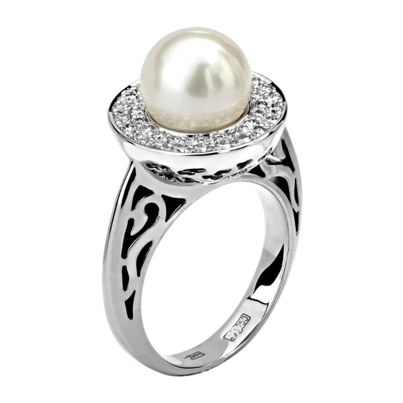 Кольцо из белого золота 750 пробы с жемчугом и бриллиантами 01К672904-1
