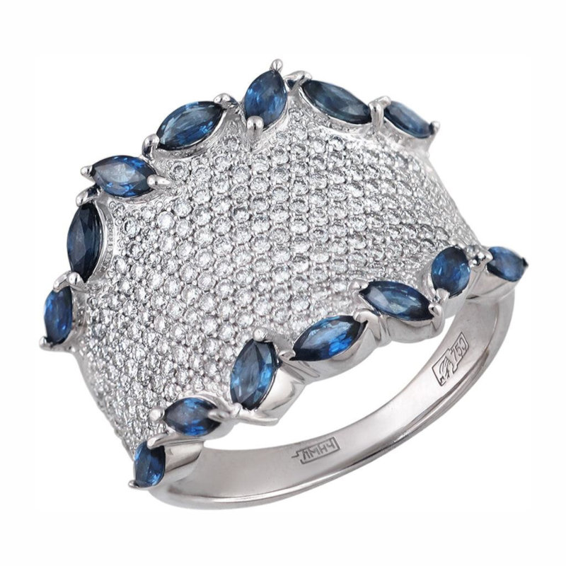 Кольцо из белого золота 750 пробы с сапфирами и бриллиантами 01К673921-1