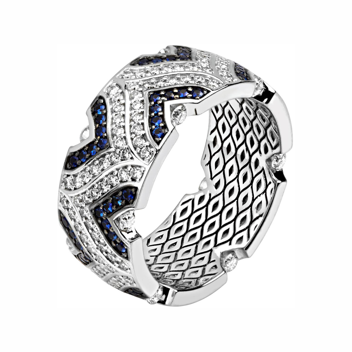 Кольцо из белого золота 750 пробы с сапфирами и бриллиантами 01К675786-1