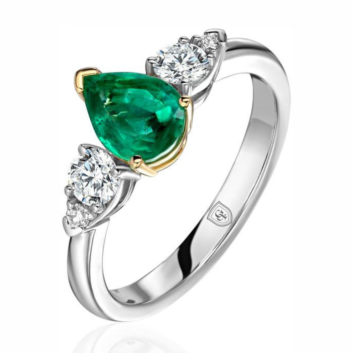 Кольцо из белого золота 750 пробы с изумрудом и бриллиантами 01К6814956-2