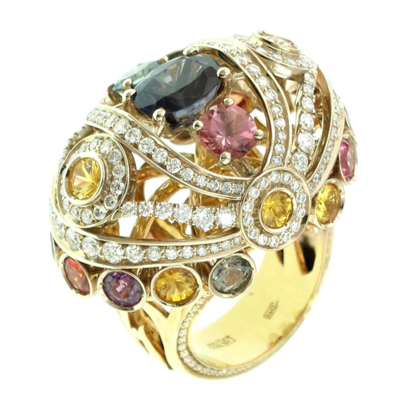 Кольцо из комбинированного золота 750 пробы с турмалинами, шпинелью, сапфирами и бриллиантами 01К686657L-4
