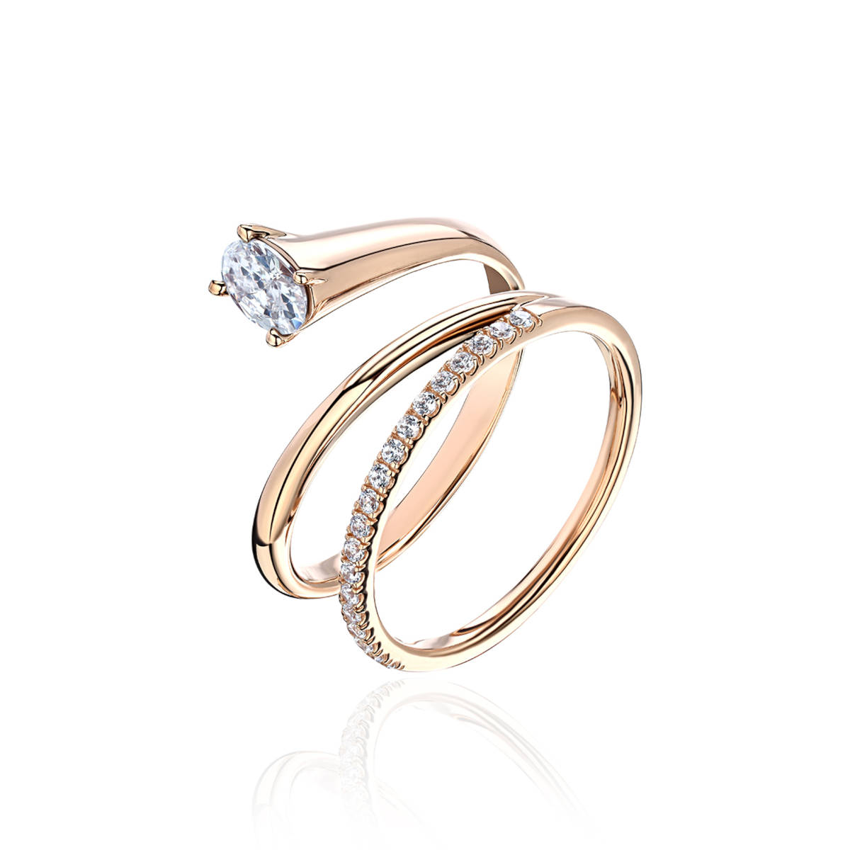 Дизайн кольца вдохновлен архитектурными особенностями мегаполиса: городскими дорогами, мостами, светящимися ночными фонарями и линиями строительных конструкций. Внимание к деталям проявляется в использовании линий, полос и ярких камней, создающих динамичный и сдержанный городской стиль. Модели коллекции объединяет баланс между комфортом и эстетикой, что делает их удобными для ежедневного ношения и одновременно стильными. Украшения внутри коллекции легко комбинируются, позволяя создавать разнообразные образцы, отражающие индивидуальность современной женщины.