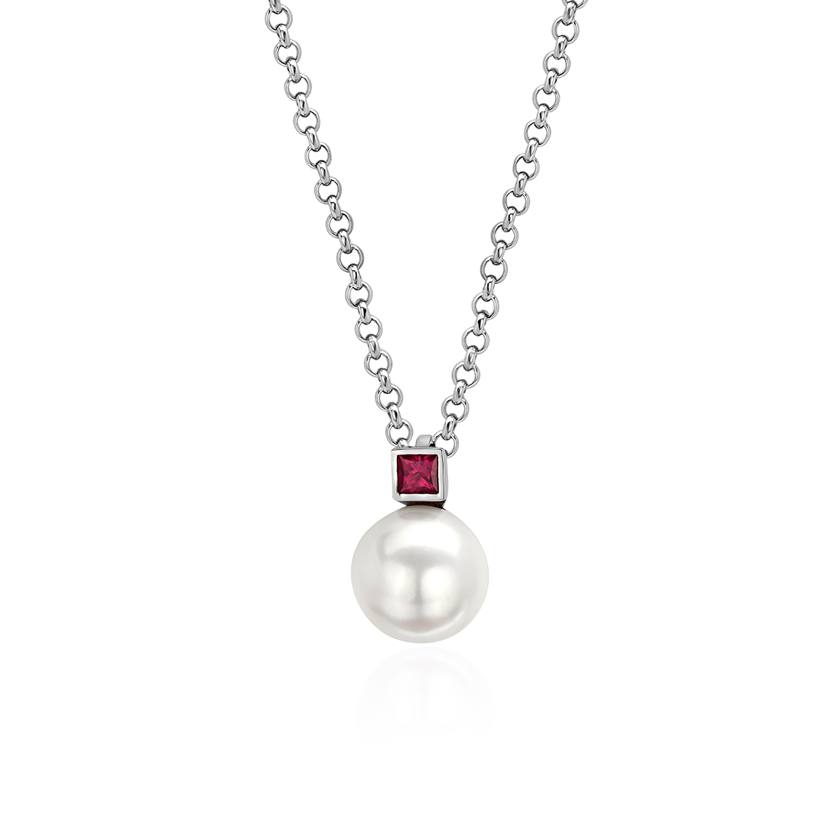 Колье из белого золота 585 пробы с жемчугом и рубином 01Л522151-1