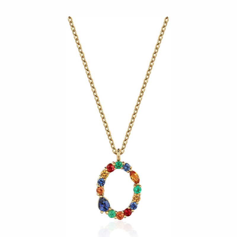 Колье из желтого золота 750 пробы с сапфирами и изумрудами 01Л542342-1