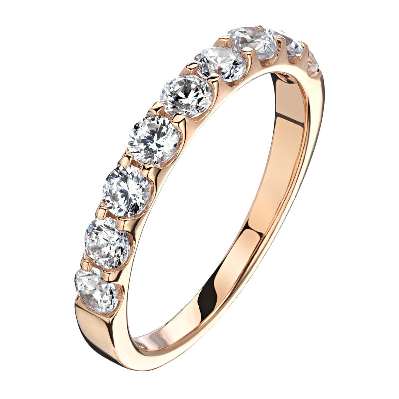 Золотое кольцо из красного золота 585 пробы с дорожкой камней из блока Осень коллекции "Мы разные". Ювелирная коллекция «Мы разные» рождена музыкой. В основе коллекции лежат четыре скрипичных концерта, объединенных одним названием – «Времена года». Изделие отражает эмоции, которые художник испытал при прослушивании произведений. Ритмом мелодий передается жизнерадостное настроение. Классика и лаконичность данного блока подойдет девушке осень: спокойная, с открытой душой и жизнерадостная.