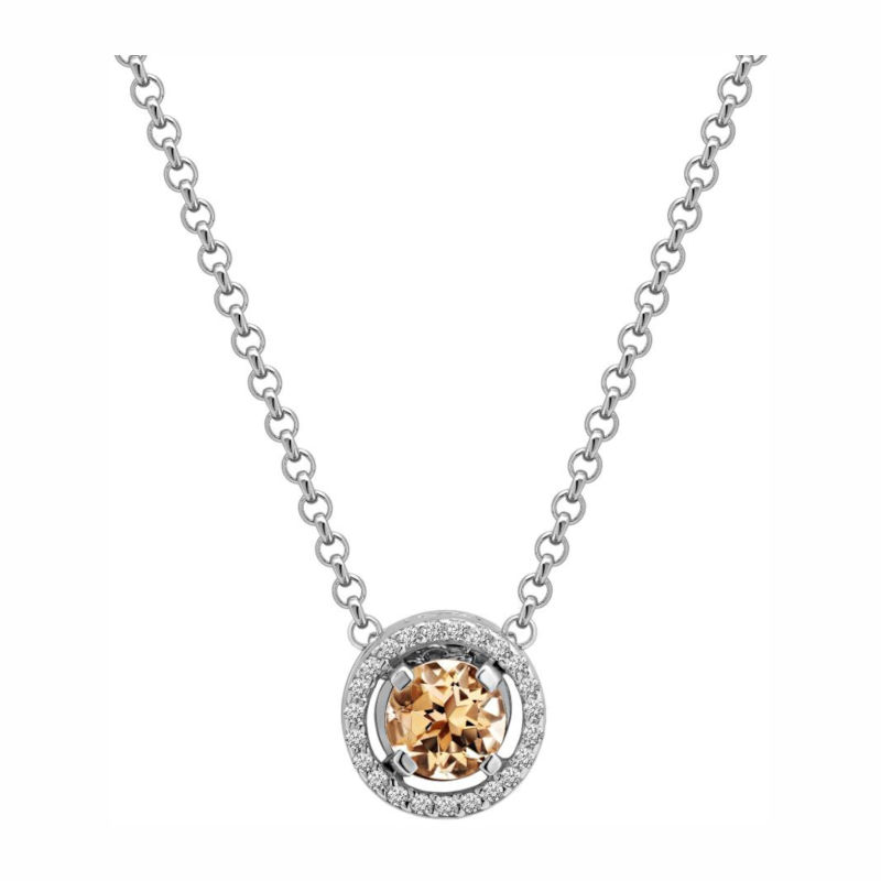 Колье из белого золота 585 пробы с гелиодором и бриллиантами 01Л621919-1