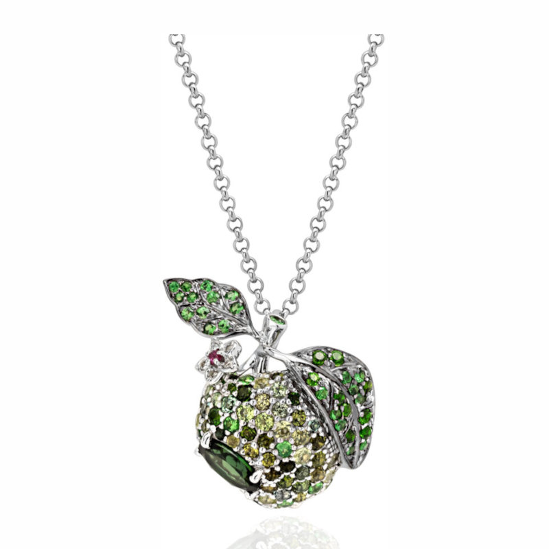 Колье из белого золота 585 пробы с хромдиопсидами, турмалинами, хризолитами, тсаворитами, рубином и бриллиантами 01Л6211052-5