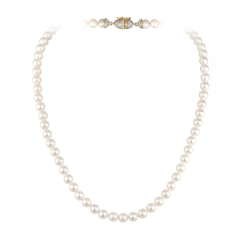 Колье из желтого золота 585 пробы с жемчугом и бриллиантами 01Л631653-1