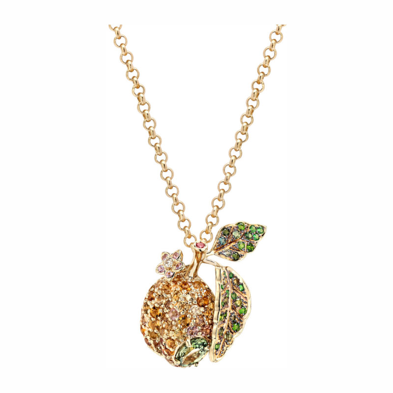 Колье из желтого золота 585 пробы с цитрином, хромдиапсидами, сапфирами, гиацинтами, тсаворитами, турмалинами и бриллиантами 01Л6311050-9