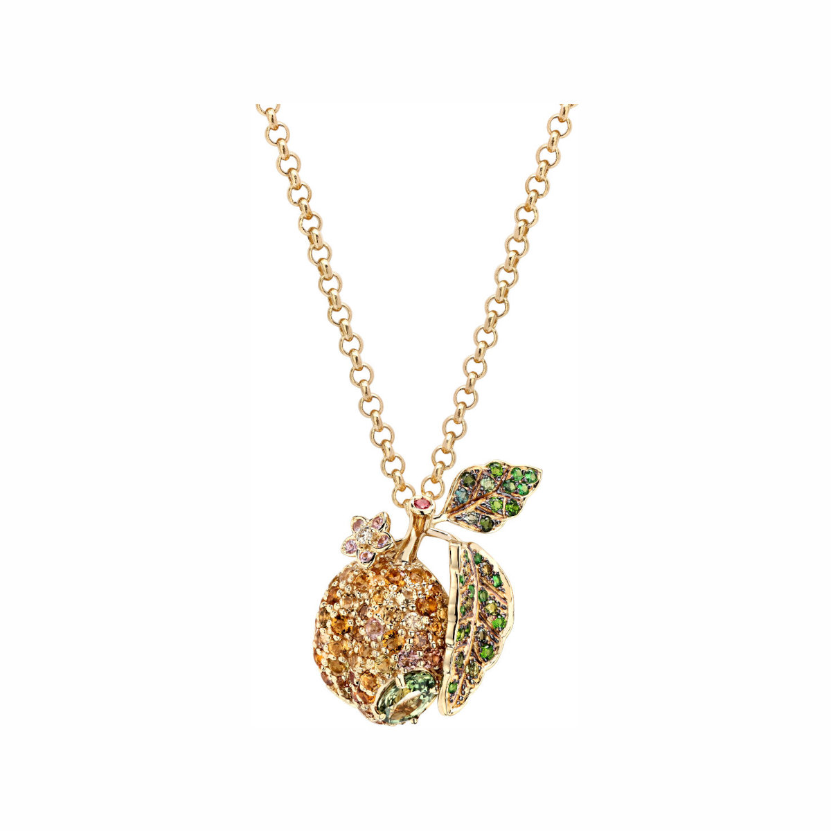 Колье из желтого золота 585 пробы с цитрином, хромдиапсидами, сапфирами, гиацинтами, тсаворитами, турмалинами и бриллиантами 01Л631940-9