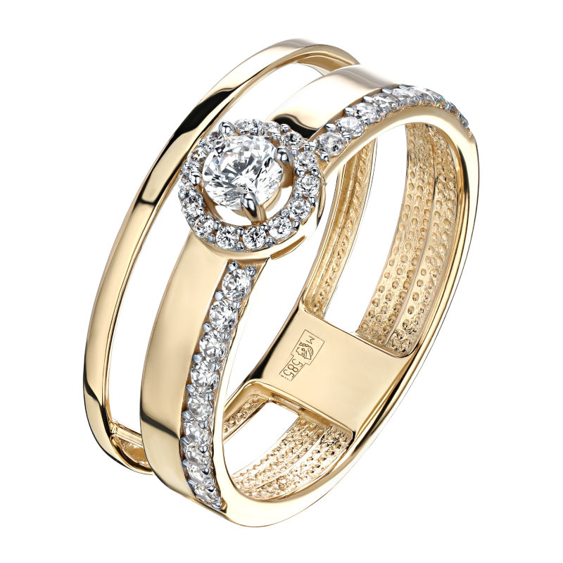 Кольцо из желтого золота 585 пробы c фианитами 01К1314858