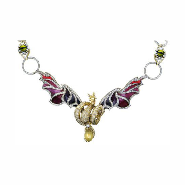Колье из комбинированного золота 750 пробы с эмалью, рубинами и бриллиантами 01Л6801094ЭL