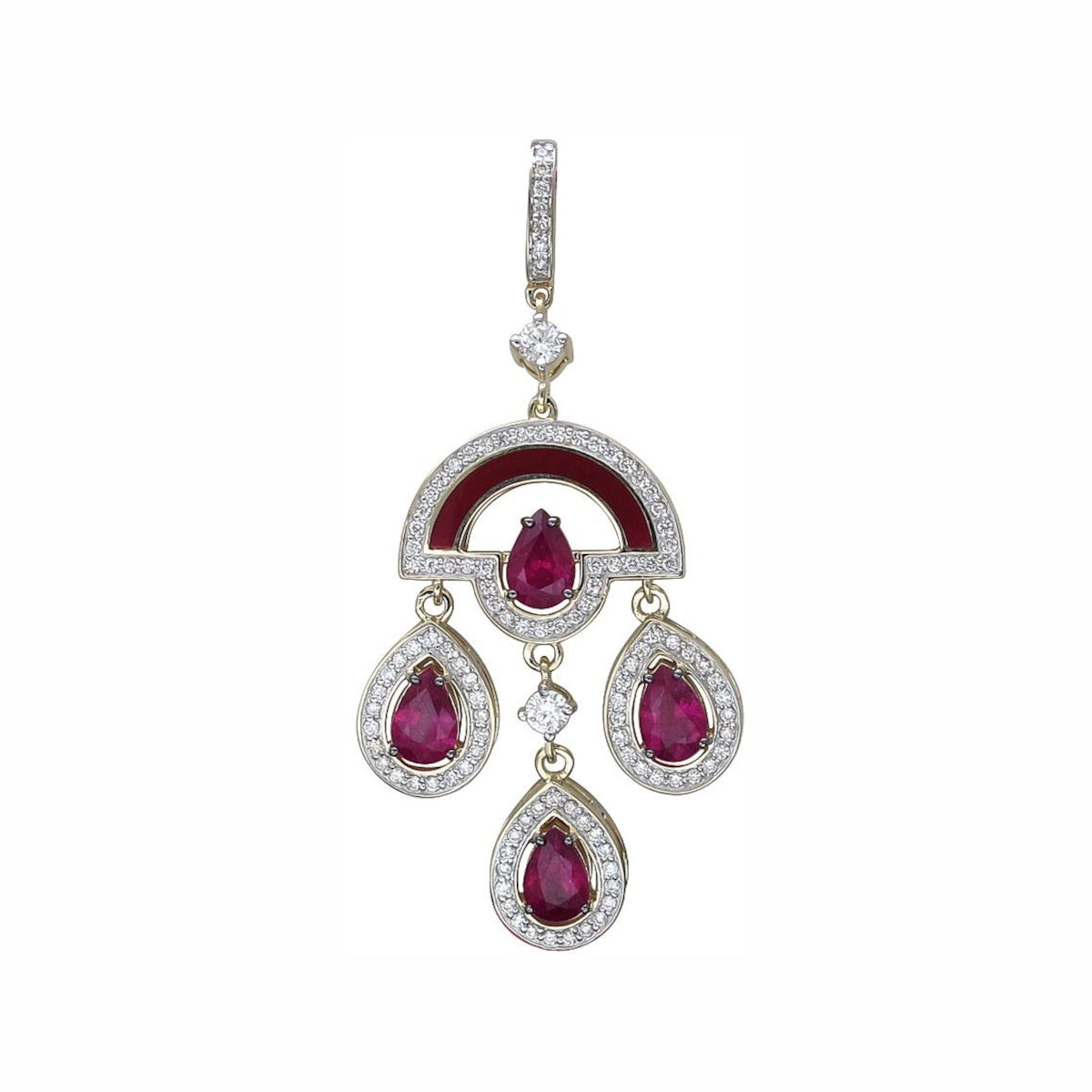 Подвеска из желтого золота 585 пробы с рубинами, эмалью и бриллиантами 01П6311873Э-2