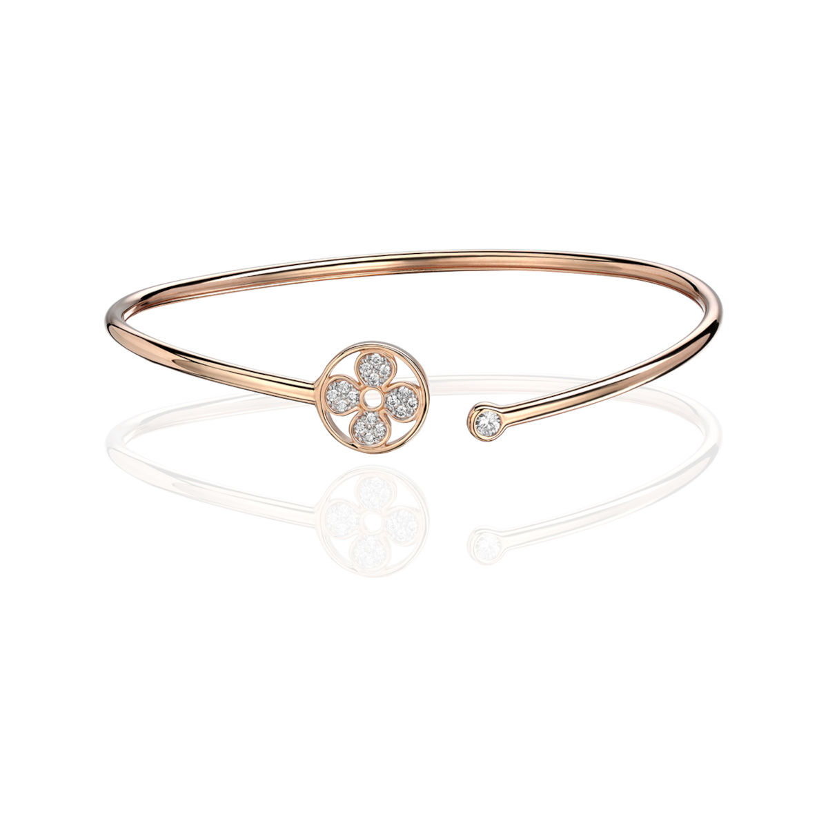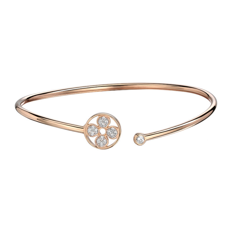 Браслет конго из красного золота 585 пробы с фианитами. Жесткий можно и нужно сочетать с другими браслетами, таким образом собирая модные сеты на своих ручках. Допустимо миксовать разные цвета золота. Размер браслета универсальный. Зеркальный блеск металла, гладкая поверхность, любимая форма - это идеальный подарок. Браслеты способны привлечь внимание к изяществу Ваших рук и добавить блеска любому образу. Из всего разнообразия вариантов дизайна можно выбрать именно тот, который впишется в Ваш уникальный стиль.