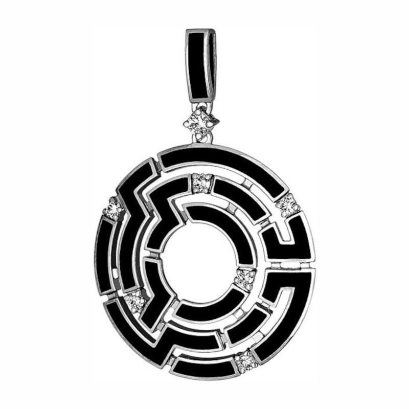 Подвеска из белого золота 750 пробы с бриллиантами и эмалью 01П676502Э