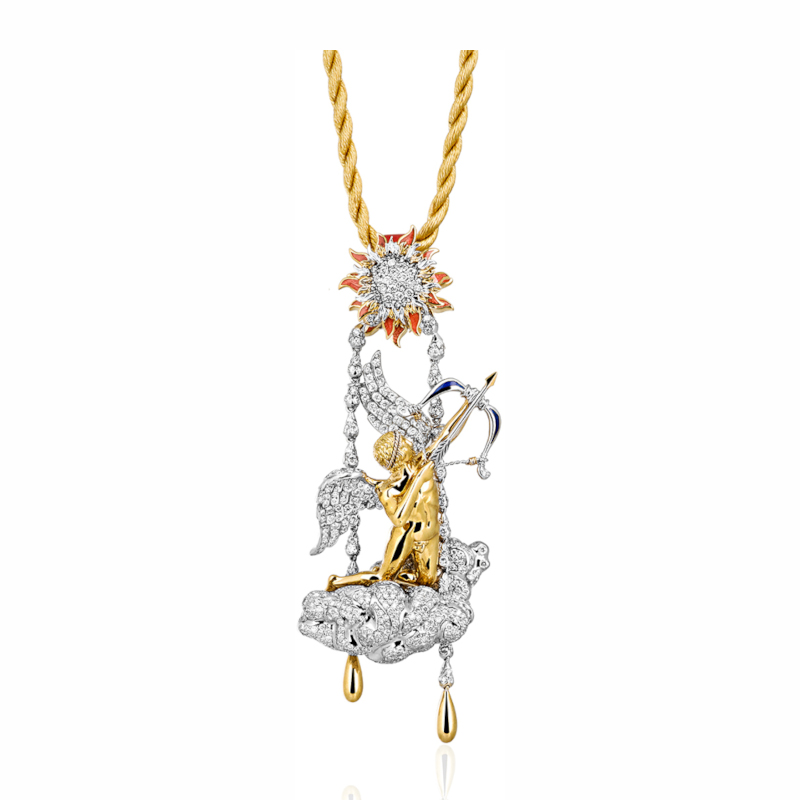 Подвеска из комбинированного золота 750 пробы с бриллиантами и эмалью 01П684671ЭL