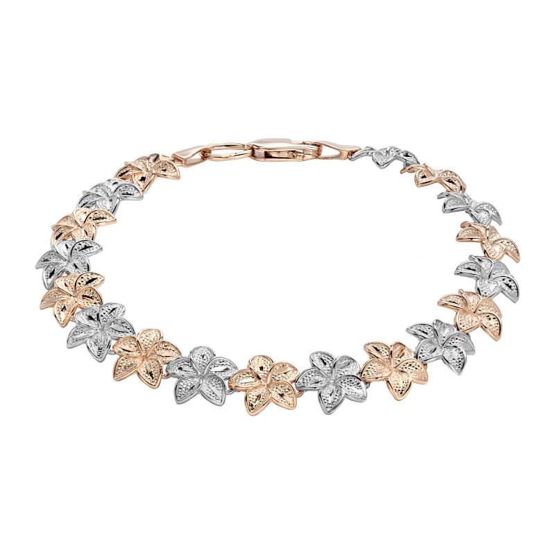 Браслет "Цветы" 01Б760321 выполнен в стиле цепочки из одинаковых цветков размером 9x9 мм, создающих нежный и утончённый образ. Изделие изготовлено из двух видов золота 585 пробы — белого и красного, что придает ему особый шарм. Каждая цветочная деталь выполнена методом литья, что обеспечивает аккуратность и прочность конструкции. Браслет полностью состоит из литых элементов, соединённых между собой звеньями, что делает его гибким и удобным для ношения.