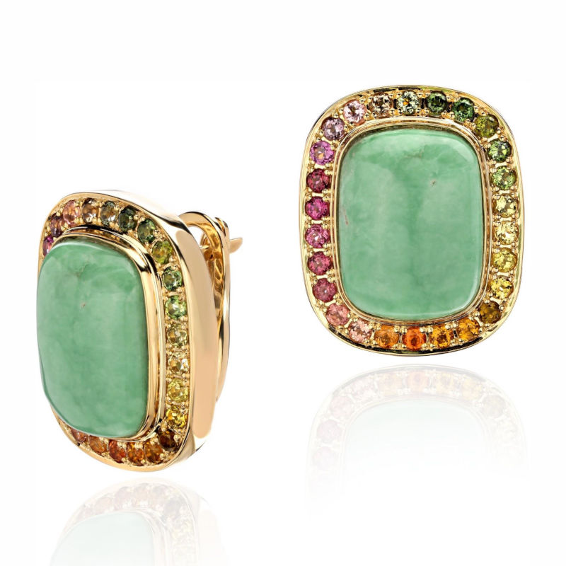 Серьги из желтого золота 750 пробы с варисцитами и турмалинами 01С3413991-1