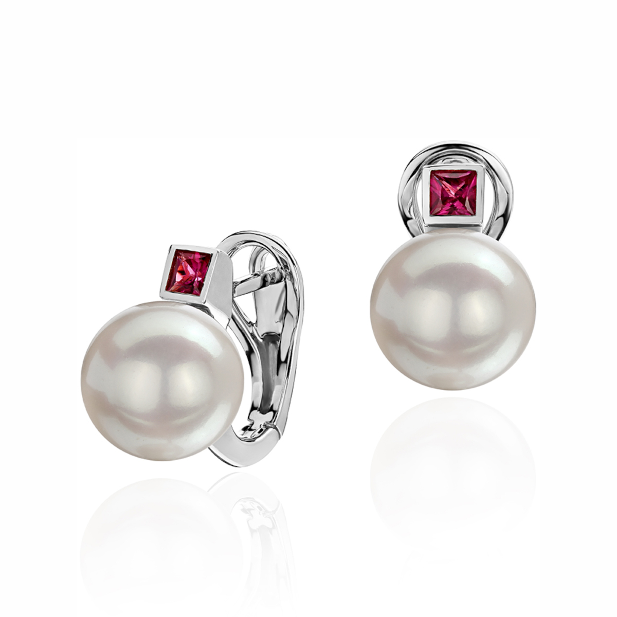 Серьги из белого золота 575 пробы с рубинами и жемчугом 01С5213463-1
