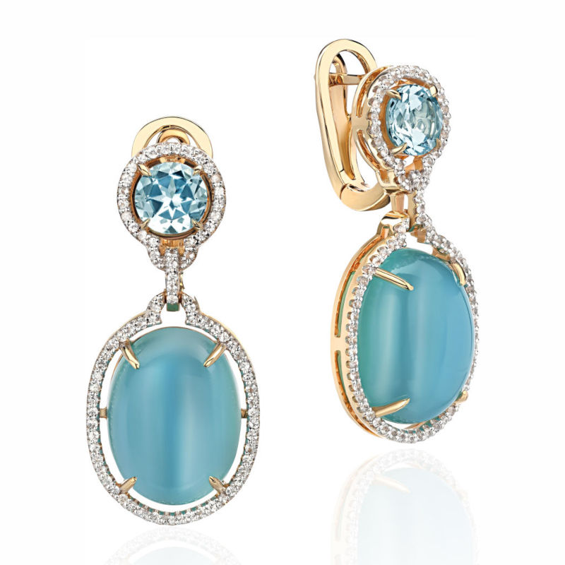 Серьги из желтого золота 585 пробы с сапфирами, агатами и топазами 01С53123389-2
