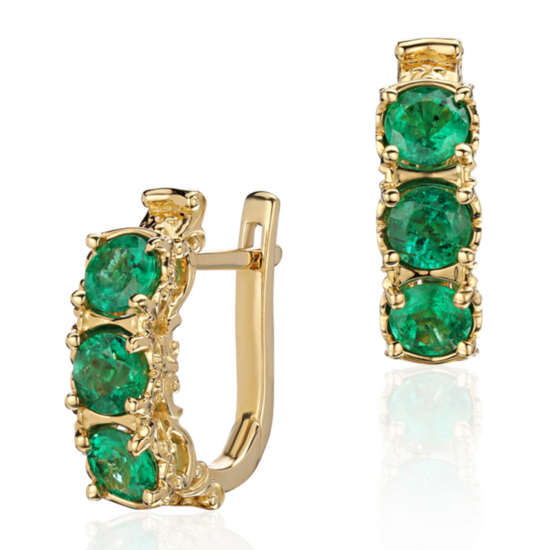 Серьги из желтого золота 750 пробы с изумрудами 01С547284-1