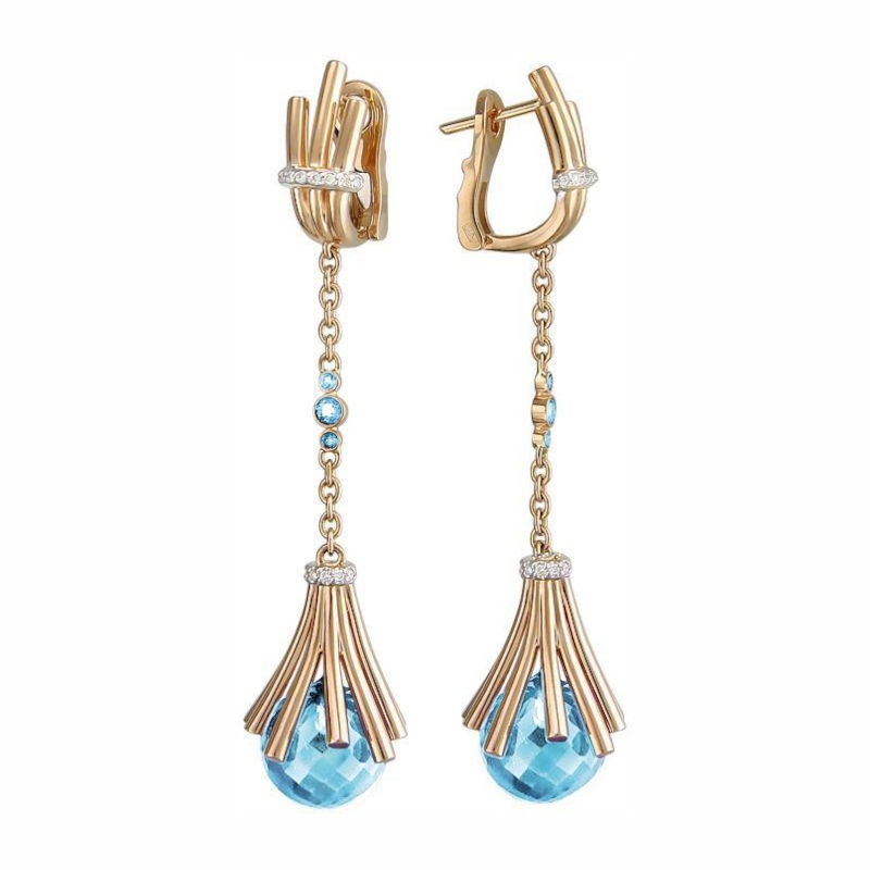 Серьги из красного золота 585 пробы с топазами и бриллиантами 01С6110164-2