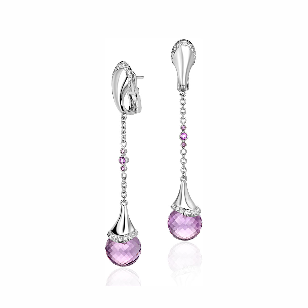 Серьги из белого золота 585 пробы с аметистами и бриллиантами 01С6210166-8