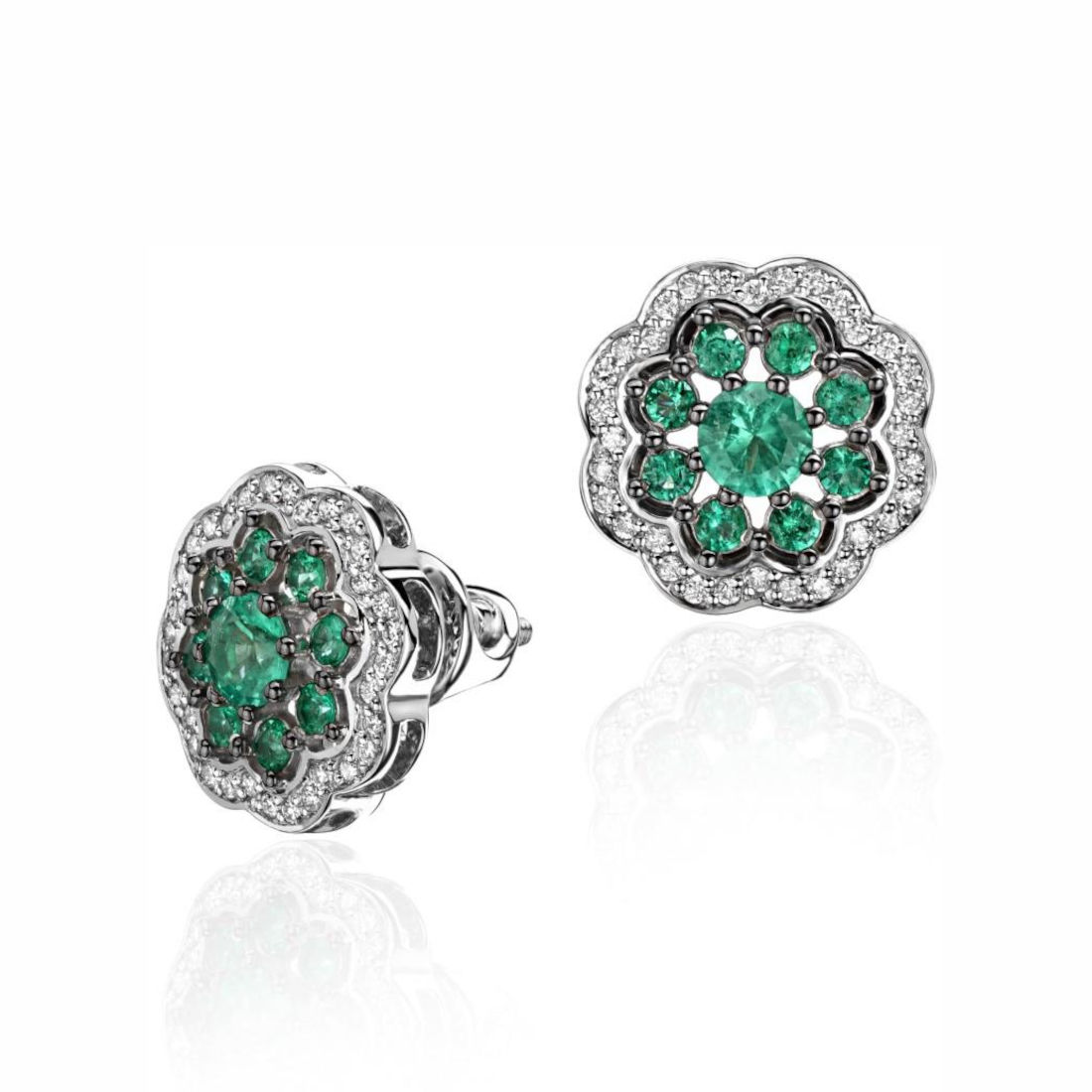 Серьги из белого золота 585 пробы с изумрудами и бриллиантами 01С6212570-2