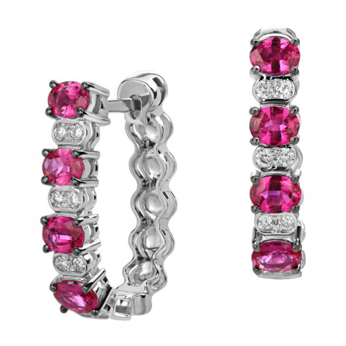 Серьги из белого золота 585 пробы с рубинами и бриллиантами 01С6213043-3
