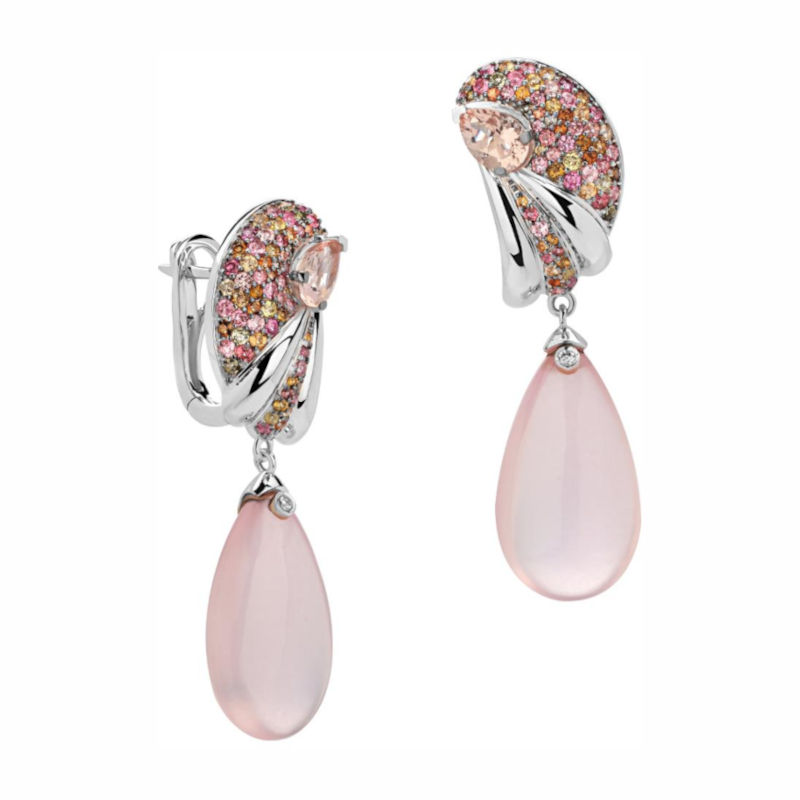 Серьги из белого золота 585 пробы с турмалинами, морганитами, кварцем и бриллиантами 01С6214474-3