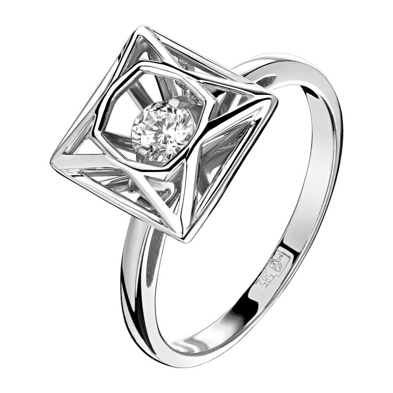 Кольцо из белого золота 585 пробы с фианитом 01К127954