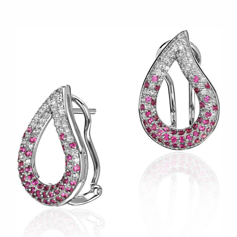 Серьги из белого золота 585 пробы с рубинами и бриллиантами 01С6214483-1