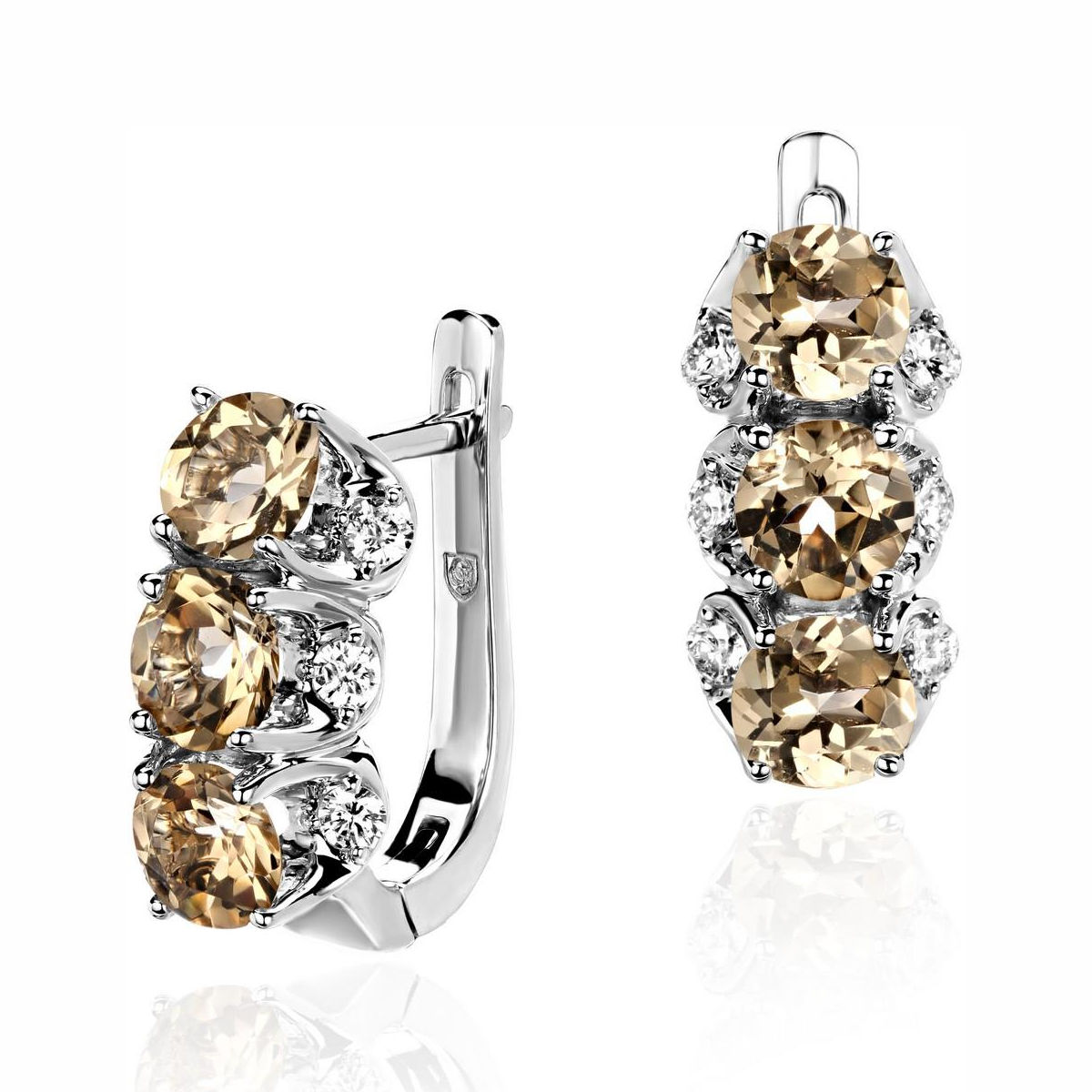 Серьги из белого золота 585 пробы с гелиодорами и бриллиантами 01С6271105-18