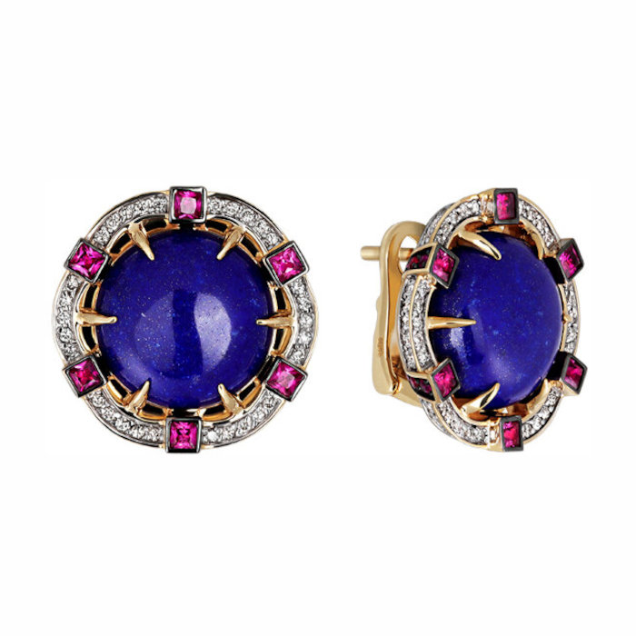 Серьги из желтого золота 585 пробы с рубинами, лазуритом и бриллиантами 01С6310484-1
