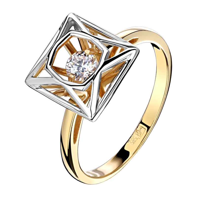 Кольцо из желтого золота 585 пробы c фианитом 01К137954
