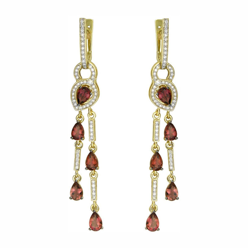 Серьги из желтого золота 585 пробы с турмалинами и бриллиантами 01С6311592-4