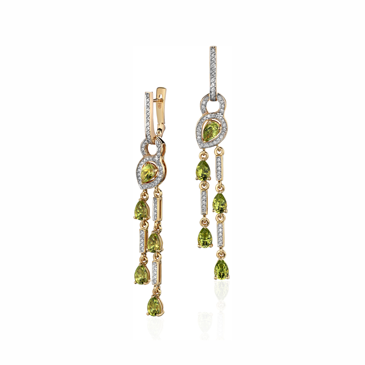Серьги из желтого золота 585 пробы с хризолитами и бриллиантами 01С6312692-7