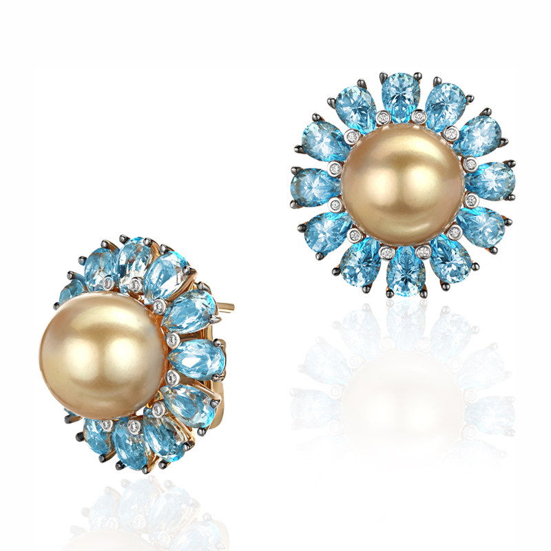 Серьги из желтого золота 585 пробы с топазами, жемчугом и бриллиантами 01С6313059-2
