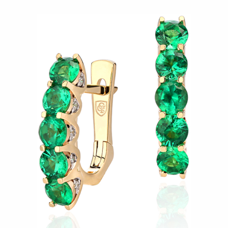 Серьги из желтого золота 585 пробы с изумрудами и бриллиантами 01С6312282-1