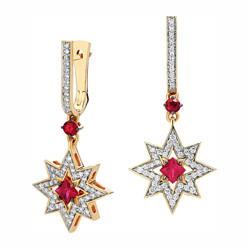 Серьги из желтого золота 585 пробы с рубинами и бриллиантами 01С6313442-1