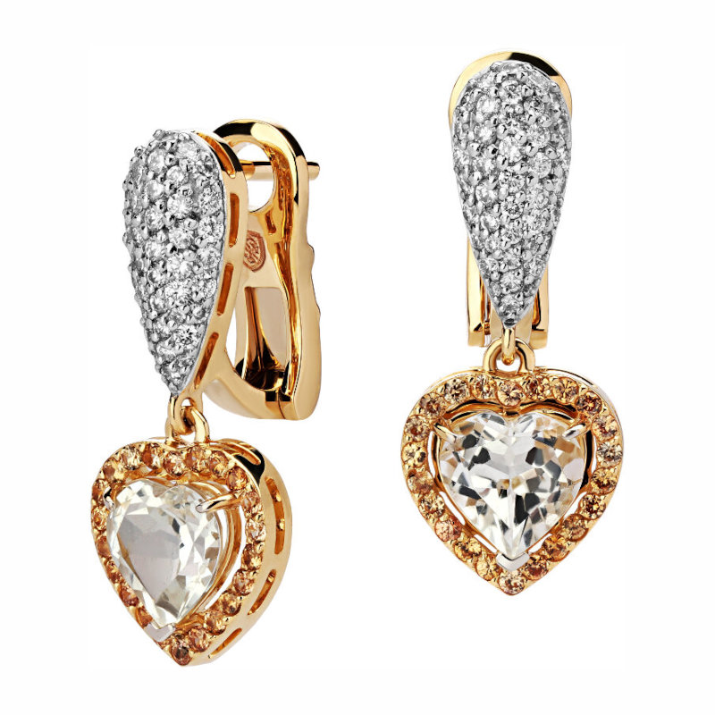Серьги из желтого золота 585 пробы с топазами, гиацинтами и бриллиантами 01С6312970-1