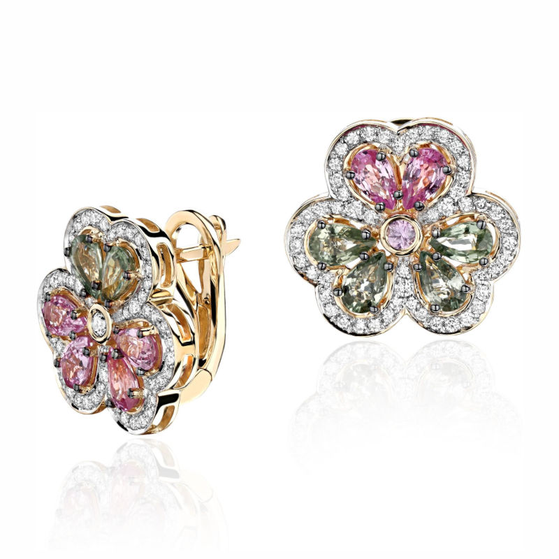 Серьги из желтого золота 585 пробы с сапфирами и бриллиантами 01С6312993-4
