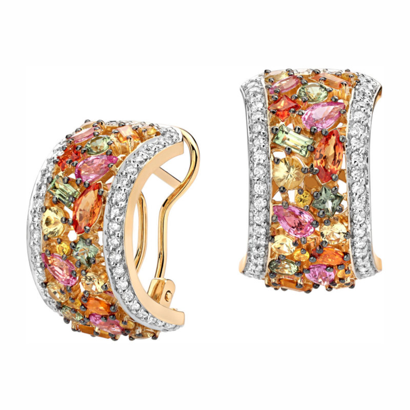 Серьги из желтого золота 585 пробы с сапфирами и бриллиантами 01С6313458-1